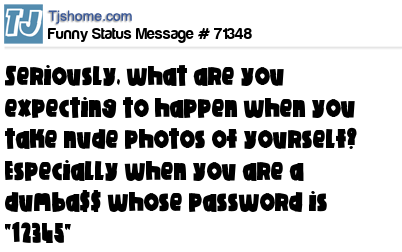 X says Seriously, what are you expecting to happen when you take nude photos of yourself? Especially when you are a dumba$$ whose password is "12345"