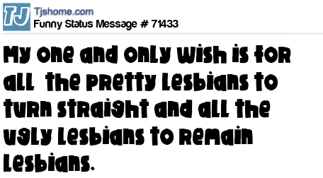 X says My one and only wish is for all the pretty lesbians to turn straight and all the ugly lesbians to remain lesbians.