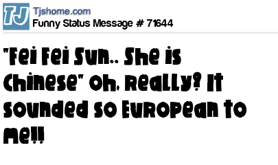 X "Fei Fei Sun.. She is Chinese" oh, really? It sounded so European to me!!