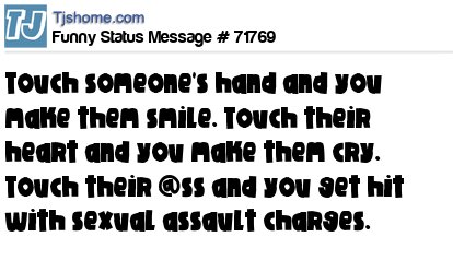 X says Touch someone's hand and you make them smile. Touch their heart and you make them cry. Touch their @ss and you get hit with sexual assault charges.
