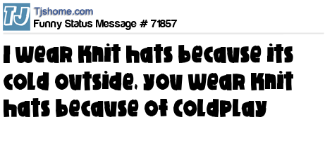 X is I wear knit hats because its cold outside, you wear knit hats because of Coldplay