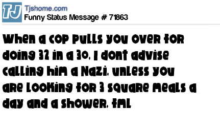 X is When a cop pulls you over for doing 32 in a 30, I dont advise calling him a Nazi, unless you are looking for 3 square meals a day and a shower, fml