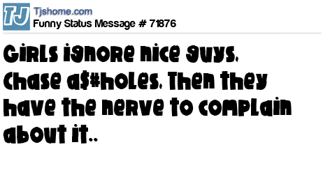 - # 106364 Hey, I'm a girl. I ignore nice guys, chase douchebags, and then complain about it