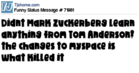 X didnt Mark Zuckerberg learn anything from Tom Anderson? the changes to myspace is what killed it