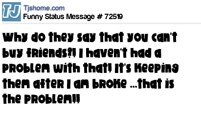 X says why do they say that you can't buy friends?! I haven't had a problem with that! It's keeping them after I am broke ...that is the problem!!