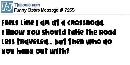 X feels like I am at a crossroad. I know you should take the road less traveled... but then who do you hang out with?