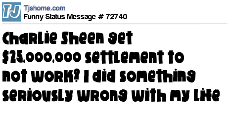 X says Charlie Sheen get $25,000,000 settlement to not work? I did something seriously wrong with my life
