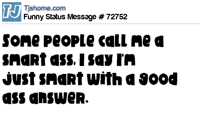 X  Some people call me a smart ass, I say I'm just smart with a good ass answer.