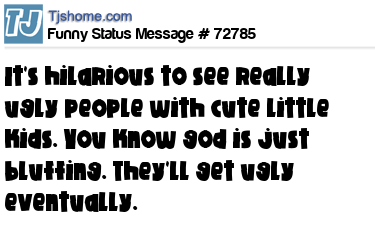 X is It's hilarious to see really ugly people with cute little kids. You know god is just bluffing. They'll get ugly eventually.