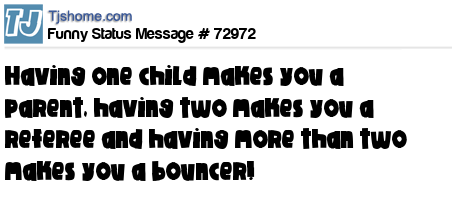 - # 28222 Having one child makes you a parent. Having two makes you a referee.