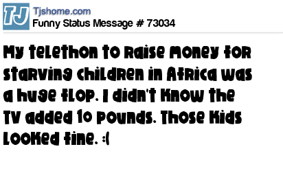X is My telethon to raise money for starving children in Africa was a huge flop. I didn't know the TV added 10 pounds. Those kids looked fine. :(