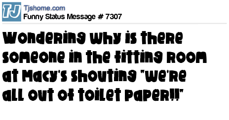X is wondering why is there someone in the fitting room at Macy's shouting "we're all out of toilet paper!!"