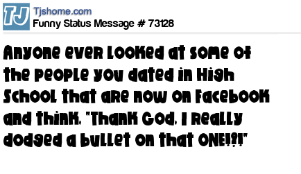 X Anyone ever looked at some of the people you dated in High School that are now on Facebook and think, "Thank God, I really dodged a bullet on that ONE!?!"