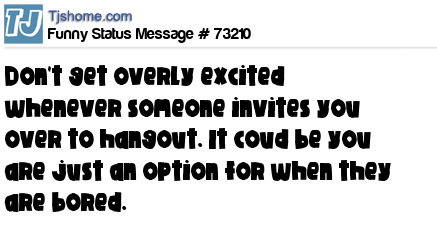 X says Don't get overly excited whenever someone invites you over to hangout. It coud be you are just an option for when they are bored.