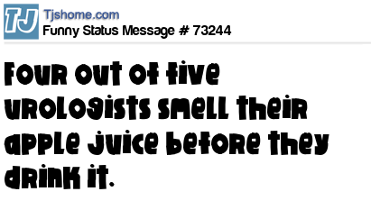 - # 70875 Studies say 9 out of 10 Doctors drink Apple Juice as a part of a healthy diet. The other one is a Uroligist.