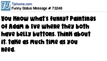 - # 102901 You know what's funny? Paintings of Adam & Eve where they both have belly buttons. Think about it, take all the time you need.