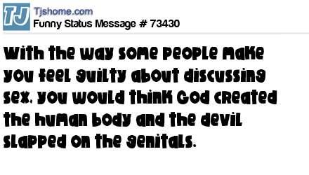 X says With the way some people make you feel guilty about discussing sex, you would think God created the human body and the devil slapped on the genitals.