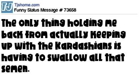 - # 73347 The hardest part about keeping up with the Kardashians is swallowing all that semen.