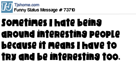 X says Sometimes I hate being around interesting people because it means I have to try and be interesting too.