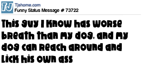 X This guy I know has worse breath than my dog, and my dog can reach around and lick his own ass