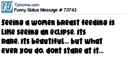 X is seeing a women breast feeding is like seeing an eclipse, its rare, its beautiful... but what ever you do, dont stare at it...