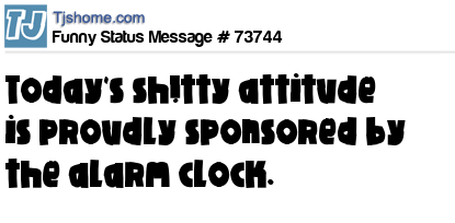 X says Today's sh!tty attitude is proudly sponsored by the alarm clock.