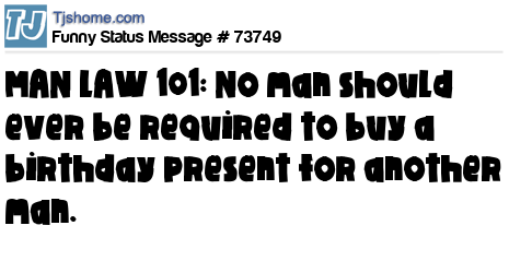 X says MAN LAW 101: No man should ever be required to buy a birthday present for another man.