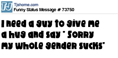 X says I need a guy to give me a hug and say " Sorry my whole gender sucks"