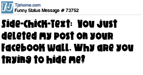 X says Side-Chick-Text: “You just deleted my post on your Facebook wall. Why are you trying to hide me?”