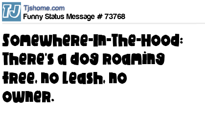 X says Somewhere-In-The-Hood: There's a dog roaming free, no leash, no owner.