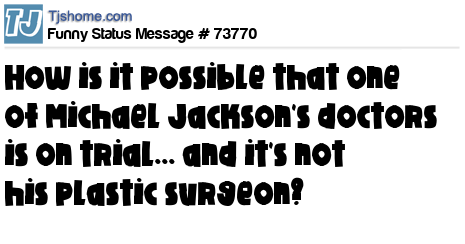 - # 73689 I can't believe that one of Michael Jackson's Doctors is on trial..........and it's not his plastic surgeon!