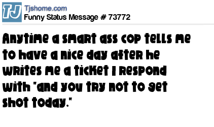 X Anytime a smart ass cop tells me to have a nice day after he writes me a ticket I respond with "and you try not to get shot today."