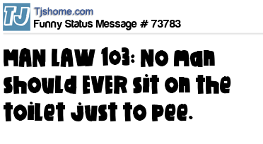 X says MAN LAW 103: No man should EVER sit on the toilet just to pee.