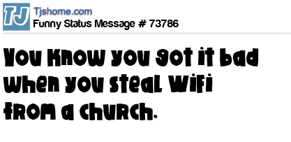 - # 130837 So if I steal "free" wifi from the local church near my house, does that mean god is sending me a signal?