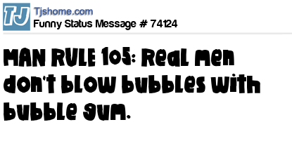 X says MAN RULE 105: Real men don't blow bubbles with bubble gum.