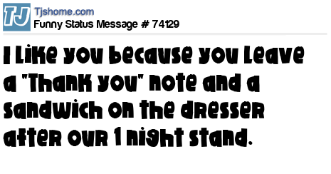 X I like you because you leave a "Thank you" note and a sandwich on the dresser after our 1 night stand.