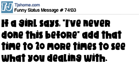 X If a girl says, "I've never done this before" add that time to 20 more times to see what you dealing with.