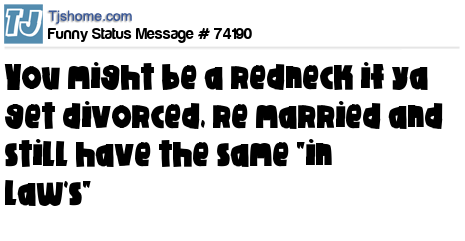 X is You might be a redneck if ya get divorced, re married and still have the same "in law's"
