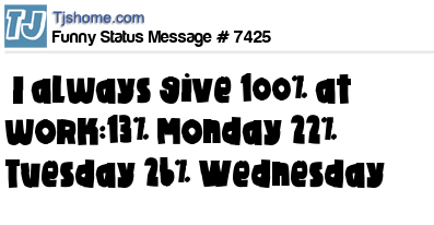 - # 107376 ...“I always give 100% at work: 13% Monday, 22% Tuesday, 26% Wednesday, 35% Thursday, 4% Friday”...