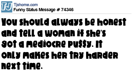 X says You should always be honest and tell a woman if she's got a mediocre pu$$y. It only makes her try harder next time.