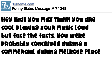 X says Hey kids you may think you are cool playing your music loud, but face the facts. You were probably conceived during a commercial during Melrose Place