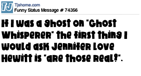 X says If I was a ghost on "Ghost Whisperer" the first thing I would ask Jennifer Love Hewitt is "are those real?".