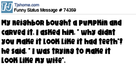 X is my neighbor bought a pumpkin and carved it. I asked him, " why didnt you make it look like it had teeth"? he said, " I was trying to make it look like my wife".