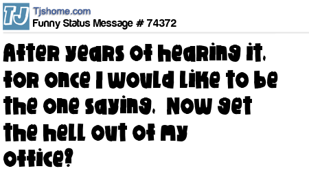 X says After years of hearing it, for once I would like to be the one saying, “Now get the hell out of my office?”