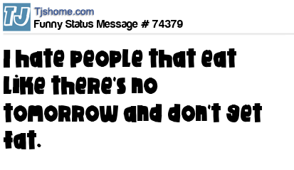 X is I hate people that eat like there's no tomorrow and don't get fat.