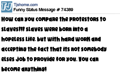 X is How can you compare the protestors to slaves?!? slaves were born into a hopeless life, but with hard work and accepting the fact that its not somebody elses job to provide for you. You can become anything!
