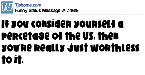X If you consider yourself a percetage of the US, then you're really just worthless to it.