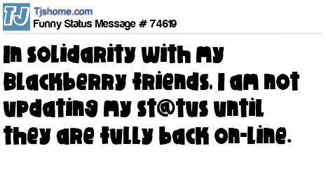 X In solidarity with my Blackberry friends, I am not updating my st@tus until they are fully back on-line.