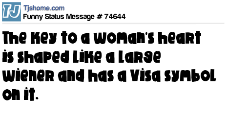 X The key to a woman's heart is shaped like a large wiener and has a Visa symbol on it.
