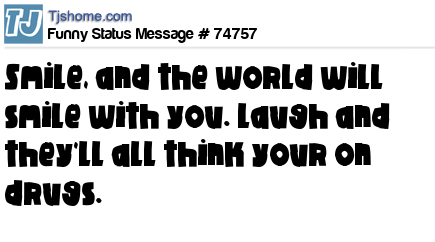 - # 24984 Smile, and the world will smile with you. Laugh and they will all think your on drugs!!